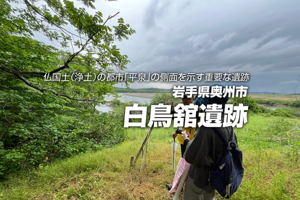 白鳥舘遺跡は、平泉の中心地から北東に約5㎞、北上川の西岸に位置する遺跡です。北上川は、「政治・行政上の拠点」である平泉を支える重要な交通基盤で、北上川なくしては都市「平泉」の発展はあり得ませんでした。白鳥舘遺跡は北上川の蛇行部に突き出した半島状の丘陵地帯にあり、川湊には最適な場所でした。