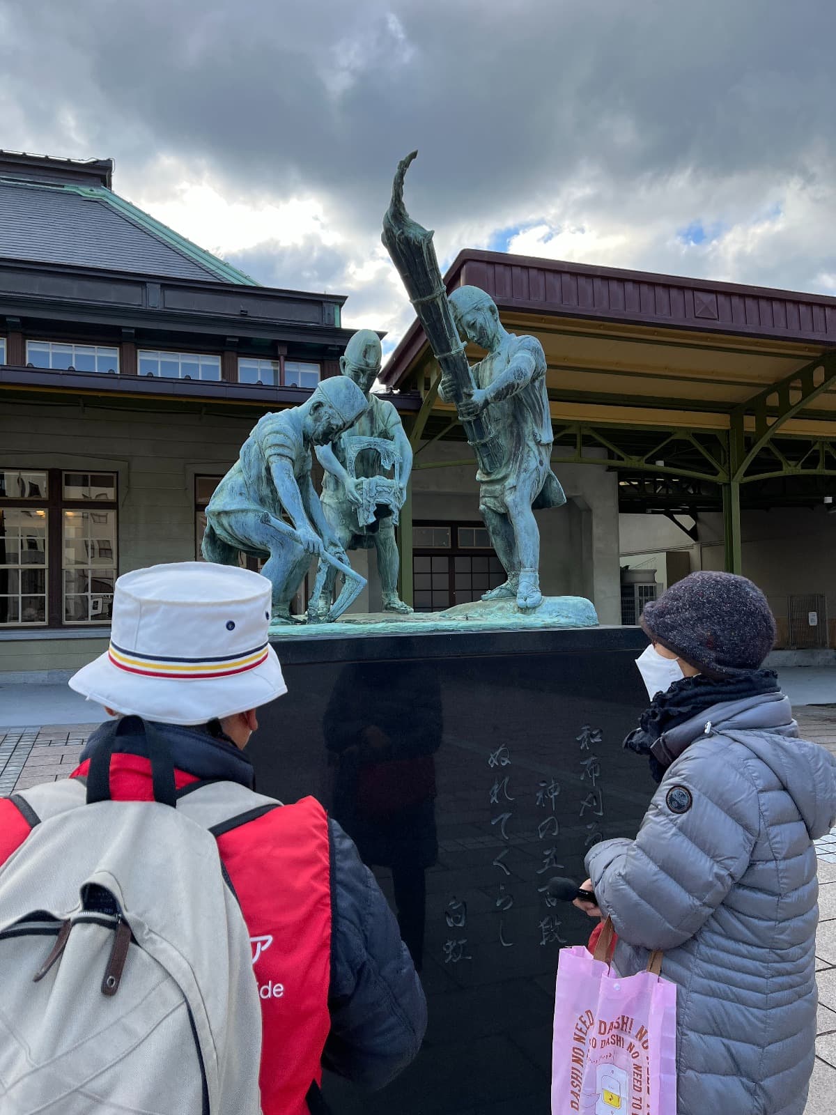 駅前広場にある和布刈(めかり)神社で行われる神事の像