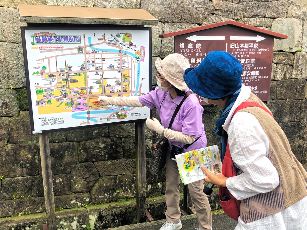 江戸時代、飫肥藩・伊東氏の居城だった飫肥城跡を案内します。地元の歴史と観光スポットの紹介に熱意を持ったボランティアメンバーで構成され、9ヶ月間の事前研修や毎月開かれる勉強会、県内他地域の史跡めぐりなどを通して、研鑽に努めています。