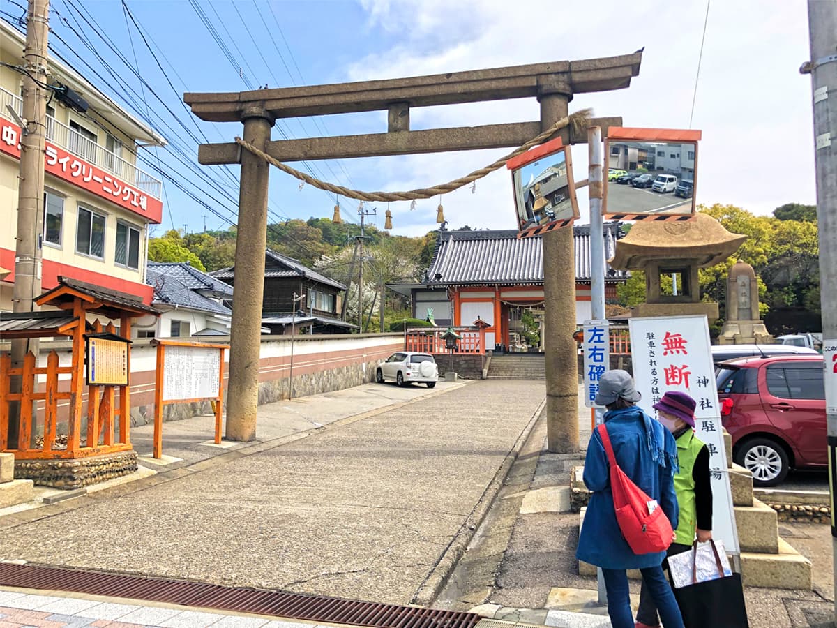 石鳥居は、肥後藩初代藩主細川忠利公が1640年に寄贈したもので、伊豆大島の花崗岩が使われていて、大分市指定有形文化財に指定されている。
