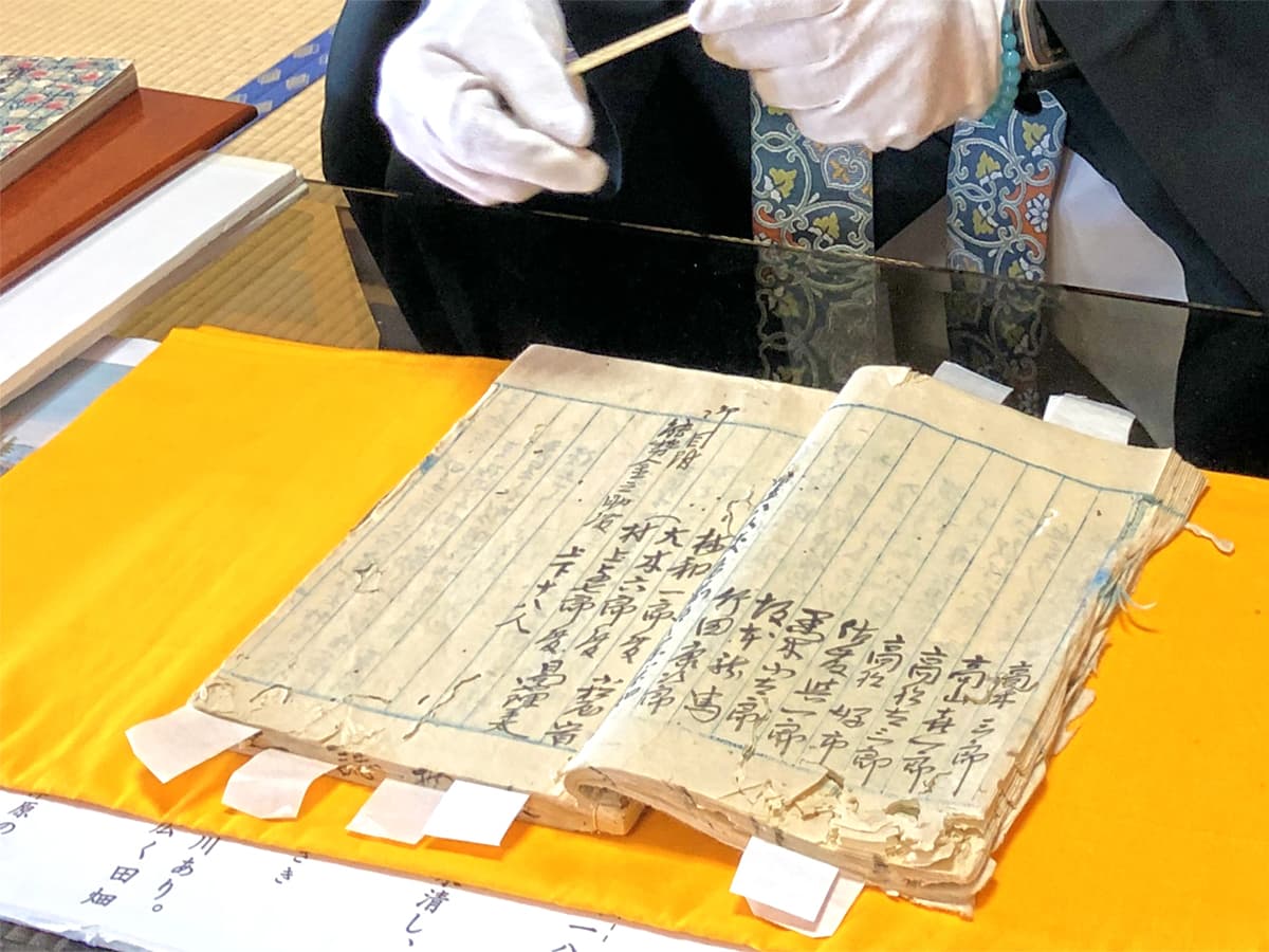本堂の一角に、何百冊の和綴じ本があり、その中に「日本人物誌」と書いた本を住職が発見し、中を見ると勝麟太郎、坂本龍馬の名前が出てきてびっくりした。2巻見つかっているが、見つかった本には「参」の字が読めるので、まだほかにもあることがわかっている。今後調査をする予定だそうだ。