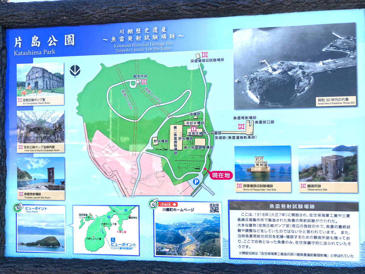 戦時遺構が残る町、川棚町をゆっくり散策。時が止まっているその場所を、その目で、その体で、感じてみてください。きっとあなたに何か語りかけてくれるはずです。魚雷艇訓練所跡、片島魚雷発射試験場跡、疎開トンネル工場跡など、の遺構をご案内します。