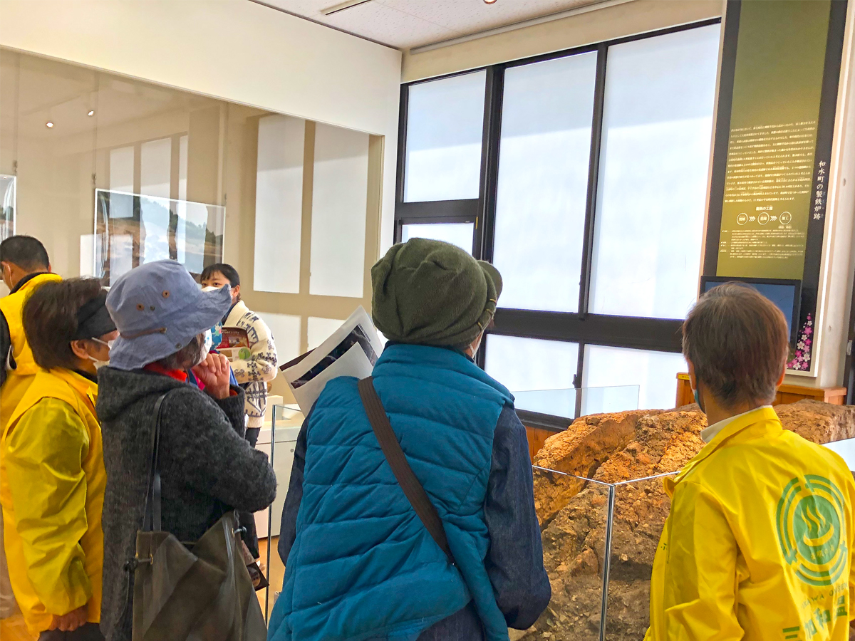 三加和温泉ふるさと交流センターが通常のガイドスタート地点で、今までの活動の中で作った八神様のバッジや手ぬぐいを見せてもらい、記念に買わせていただいた。
