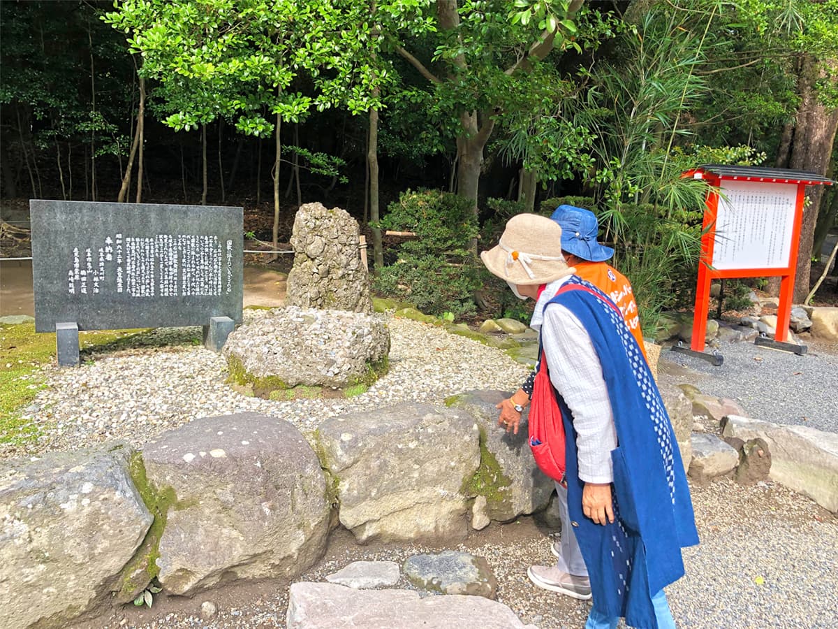 小さい石が年月をかけて石灰で固まった大きな石(巌)になると君が代で歌われている石で、岐阜県揖斐川町の方などが奉納したもの。